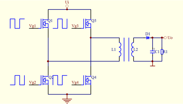全橋式:電路由Q1、Q2、Q3、Q4組成橋式電路,如圖中所給出的信號,Q1和Q4先導通,Q2、Q3截止。電流流向:電源正→Q1→Ll→Q4→電源負。后半周Q1、Q4截止,Q2、Q3導通,電流流向:電源正→Q3→L1→Q2→電源負。控制電路略微有點雜亂,需求四組不共地的驅動信號。電路不允許Q1和Q2一起導通,也不允許Q3和Q4一起導通,一起導公例意味著電源短路,Q1、Q2、Q3、Q4會炸飛的。一起假如Q1、Q4與 Q2、Q3的導通時間不對稱,那么,Ll的溝通電壓就會呈現很大的直流重量,造成磁飽滿。