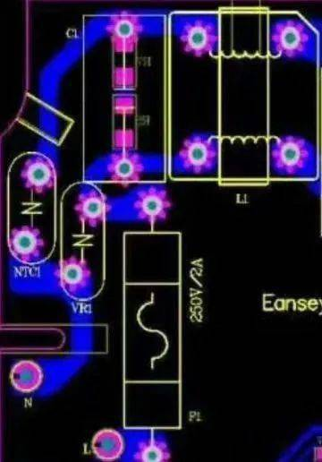 留意這里保險絲之后,接壓敏電阻VR1再接x2電容的走線,完全是繞了一個彎這是為什么?