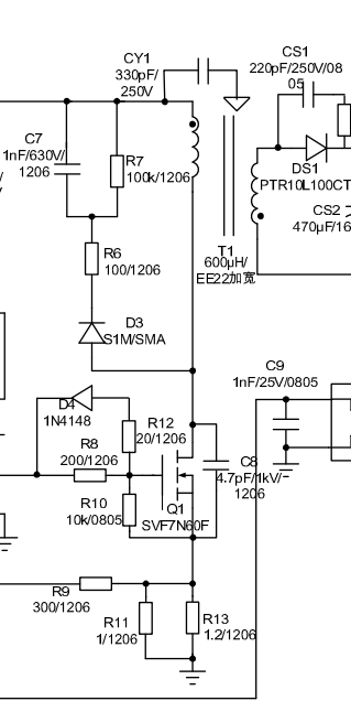 這是控制器用來直接連接高壓的采樣分壓電阻,如果間距不符合要求,很有可能就會耐壓不夠擊穿。 貼片電阻器也是有耐壓的,不過耐壓不夠就要加大封裝。