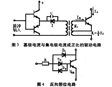 為防止因基極電流太大而增加開關管的存儲時間,可采用圖4的反向箱位電路。這種電路,當基極電流上升到使開關管的飽和壓降低于Uw時,二極管D,導通,阻止基極電流的進一步增加,可有效地防止過驅動。