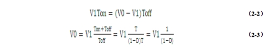 現在來講講開關電源的電路作業原理:Boost電路即升壓電路,當Q1導通時,能量從輸入電源流入貯存于電感L1中,此刻二極管D1反偏,負載由濾波電容C1供應能量,將C1中貯存的電能(C1V02/2)釋放給負載R1。當Q1截止時,電感L1中電流不能驟變,此刻二極管D1導通,電感中貯存的能量(L1I2/2)經二極管D1,流入電容C1,并供應負載R1。根據電感的伏秒平衡,在一個周期內電感的伏秒乘積和為零。假如Q1導通時刻Ton越大,那么Q1截止時提供應負載的電壓就會越大。下面經過詳細的計算來加深了解:根據伏秒平衡有式(2-2)、(2-3