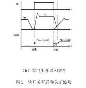 從前面的分析可以知道,開關損耗包括開通損耗和關斷損耗。利用軟開關技術可以減小變換器的開通損耗和關斷。軟開關的開通和關斷波形如圖5所示。