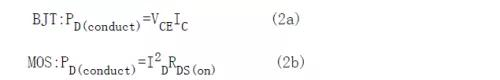 控制這個損耗的典型辦法是使功率開關導通期間的電壓降最小。要達到這個目的,設計者有必要使開關作業在飽滿狀態。這些條件由式(2a)和式(2b)給出,通過基極或柵極過電流驅動,確保由外部元器件而不是功率開關自身對集電極或漏極電流進行控制。