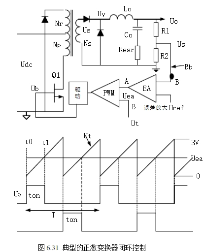 6.4.1?概述圖6.31為一個(gè)典型的正激變換器閉環(huán)調(diào)度的比如。能夠看出是一個(gè)負(fù)回響系統(tǒng)。PWM操控芯片中包含了過(guò)錯(cuò)擴(kuò)大器和PWM構(gòu)成電路。操控芯片也供給許多其他的功能,但了解閉環(huán)安穩(wěn)性問(wèn)題,僅需考慮過(guò)錯(cuò)擴(kuò)大器和PWM。關(guān)于輸出電壓Uo緩慢或直流改動(dòng),閉環(huán)當(dāng)然是安穩(wěn)的。例如輸入電網(wǎng)或負(fù)載改動(dòng)(干擾),引起Uo的改動(dòng),經(jīng)R1和R2取樣(回響網(wǎng)絡(luò)),送到過(guò)錯(cuò)擴(kuò)大器EA的反相輸入端,再與加在EA同相輸入端的參閱電壓(輸入電壓)Uref比較。將引起EA的輸出直流電平Uea改動(dòng),再送入到脈沖寬度調(diào)制器PWM的輸入端A。在PWM中,直流電平Uea與輸入B端0~3V三角波Ut比較,發(fā)生一個(gè)矩形脈沖輸出,其寬度ton等于三角波初步時(shí)刻t0到PWM輸入B三角波與直流電平相交時(shí)刻t1。此脈沖寬度選擇了芯片中輸出晶體管導(dǎo)通時(shí)刻,一起也選擇了操控晶體管Q1的導(dǎo)通時(shí)刻。Udc的添加引起Uy的添加,因Uo=Uyton/T,Uo也隨之添加。Uo添加引起Us添加,并因而Uea的削減。從三角波初步到t1的ton相應(yīng)削減,Uo恢復(fù)到它的初始值。當(dāng)然,反之亦然。PWM發(fā)生的信號(hào)能夠從芯片的輸出晶體管發(fā)射極或集電極輸出,經(jīng)電流擴(kuò)大供給Q1基極驅(qū)動(dòng)。但不論從那一點(diǎn)-發(fā)射極仍是集電極-輸出,有必要確保當(dāng)Uo添加,要引起ton削減,即負(fù)回響。應(yīng)當(dāng)注意,大多數(shù)PWM芯片的輸出晶體管導(dǎo)通時(shí)刻是t0到t1。關(guān)于這樣的芯片,Us送到EA的反相輸入端,PWM信號(hào)假定驅(qū)動(dòng)功率NPN晶體管基極(N溝道MOSFET的柵極),則芯片輸出晶體管應(yīng)由發(fā)射極輸出。但是,在某些PWM芯片(TL494)中,它們的導(dǎo)通時(shí)刻是三角波Ut與直流電平(Uea)相交時(shí)刻到三角波中止時(shí)刻t2。關(guān)于這樣的芯片,假設(shè)驅(qū)動(dòng)NPN晶體管,輸出晶體管導(dǎo)通(假設(shè)從芯片的輸出晶體管發(fā)射極輸出),這樣會(huì)隨晶體管導(dǎo)通時(shí)刻添加,使得Uo添加,這是正回響,而不是負(fù)回響。因而,TL494一類芯片,Us送到EA的同相輸入端,Uo添加使得導(dǎo)通時(shí)刻削減,就能夠選用芯片的輸出晶體管的發(fā)射極驅(qū)動(dòng)。?圖6.31電路是負(fù)回響且低頻安穩(wěn)。但在環(huán)路內(nèi),存在低電平噪音電壓和含有豐盛連續(xù)頻譜的瞬態(tài)電壓。這些重量經(jīng)過(guò)輸出Lo,Co濾波器、過(guò)錯(cuò)擴(kuò)大器和Uea到Uy的PWM調(diào)節(jié)器引起增益改動(dòng)和相移。在諧波重量中的一個(gè)重量,增益和相移或許導(dǎo)致正回響,而不再是負(fù)回響,在6.2.7節(jié)我們已議論過(guò)閉環(huán)振動(dòng)的機(jī)理。以下就開(kāi)關(guān)開(kāi)關(guān)電源作加體分析。?6.4.2?環(huán)路增益?仍是來(lái)研討圖6.31正激變換器。假定回響環(huán)在B點(diǎn)-連接到過(guò)錯(cuò)擴(kuò)大器的反相輸入端斷開(kāi)成開(kāi)環(huán)。任何一次諧波重量的噪聲從B經(jīng)過(guò)EA擴(kuò)大到Uea,由Uea傳遞到電壓Uy的平均值,和從Uy的平均值經(jīng)過(guò)Lo,Co回來(lái)到Bb(正好是從前環(huán)路斷開(kāi)點(diǎn))都有增益變化和相移。這便是6.2.7議論的環(huán)路增益信號(hào)通路。?假設(shè)假定某個(gè)頻率f1的信號(hào)在B注入到環(huán)路中,回到B的信號(hào)的幅值和相位被上面提到回路中的元件改動(dòng)了。假設(shè)改動(dòng)后的回來(lái)的信號(hào)與注入的信號(hào)相位準(zhǔn)確相同,而且幅值等于注入信號(hào),即滿意GH=-1。要是現(xiàn)在將環(huán)閉合(B連接到Bb),而且注入信號(hào)移開(kāi),電路將以頻率f1繼續(xù)振動(dòng)。這個(gè)引起開(kāi)端振動(dòng)的f1是噪聲頻譜中的一個(gè)重量。?為抵達(dá)輸出電壓(或電流)的靜態(tài)精度,過(guò)錯(cuò)擴(kuò)大器必須有高增益。高增益就或許引起振動(dòng)。過(guò)錯(cuò)擴(kuò)大器以外的傳遞函數(shù)一般無(wú)法改動(dòng),為避免參與過(guò)錯(cuò)擴(kuò)大器往后振動(dòng),一般經(jīng)過(guò)改動(dòng)過(guò)錯(cuò)擴(kuò)大器的頻率特性(校正網(wǎng)絡(luò)),使得環(huán)路頻率特性以-20dB/dec穿越,并有45°相位裕度,以抵達(dá)閉環(huán)的安穩(wěn)。以下我們研討過(guò)錯(cuò)擴(kuò)大器以外的電路傳遞函數(shù)的頻率特性。帶有LC濾波電路的環(huán)路增益Gf?除了反激變換器(輸出濾波僅為輸出電容)外,這兒議論的全部拓?fù)涠加休敵鰹V波器。一般濾波器設(shè)計(jì)時(shí)根據(jù)脈動(dòng)電流為平均值(輸出電流)的20%選取濾波電感。根據(jù)容許輸出電壓紋波和脈動(dòng)電流值以及電容的ESR選取輸出濾波電容。假設(shè)電解電容沒(méi)有ESR(最新產(chǎn)品),只按脈動(dòng)電流和容許紋波電壓選取。由此取得輸出濾波器的諧振頻率,特征阻抗,ESR零點(diǎn)頻率。在頻率特性一節(jié)圖6.7示出了LC濾波器在不同負(fù)載下的幅頻和相頻特性。?為簡(jiǎn)化議論,假定濾波器為臨界阻尼Ro=1.0Zo,帶有負(fù)載電阻的輸出LC濾波器的幅頻特性如圖6.32(a)中12345所示。此特性假定輸出電容的ESR為零。在低頻時(shí),Xc>>XL,輸入信號(hào)不衰減,增益為1即0dB。在f0以上,每十倍頻Co阻抗以20dB削減,而Lo阻抗以20dB添加