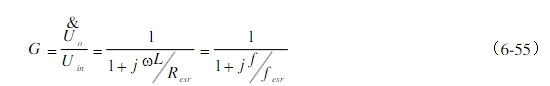 濾波電容有ESR的LC濾波器幅頻特性如圖6.35b的曲線123456。大多數(shù)濾波電容具有ESR。在f0以上的低頻段,容抗遠(yuǎn)遠(yuǎn)大于ESR,從Uo看到阻抗僅是容抗起首要作用,斜率仍為-40dB/dec;在更高頻時(shí),esrRC<<ω1,從輸出端看的阻抗僅僅ESR,在此頻率規(guī)模,電路變?yōu)?/span>LR濾波,而不是LC濾波。即