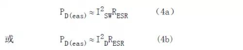 輸入輸出電容是功率開關(guān)或輸出整流器產(chǎn)生的高頻電流的唯一來歷(或貯存處),所以通過調(diào)查這些電流波形可以合理地承認(rèn)流過這些電容ESR的電流。這個電流不可避免地在電容內(nèi)產(chǎn)生熱量。設(shè)計濾波電容的首要任務(wù)便是確保電容內(nèi)部發(fā)熱足夠低,以確保產(chǎn)品的壽數(shù)。式(4)給出了電容的ESR所產(chǎn)生的功率損耗的計算式。