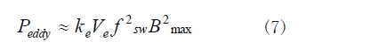 渦流損耗比磁滯損耗小得多,但跟著作業(yè)頻率的提高而敏捷添加,如式(7)所示。