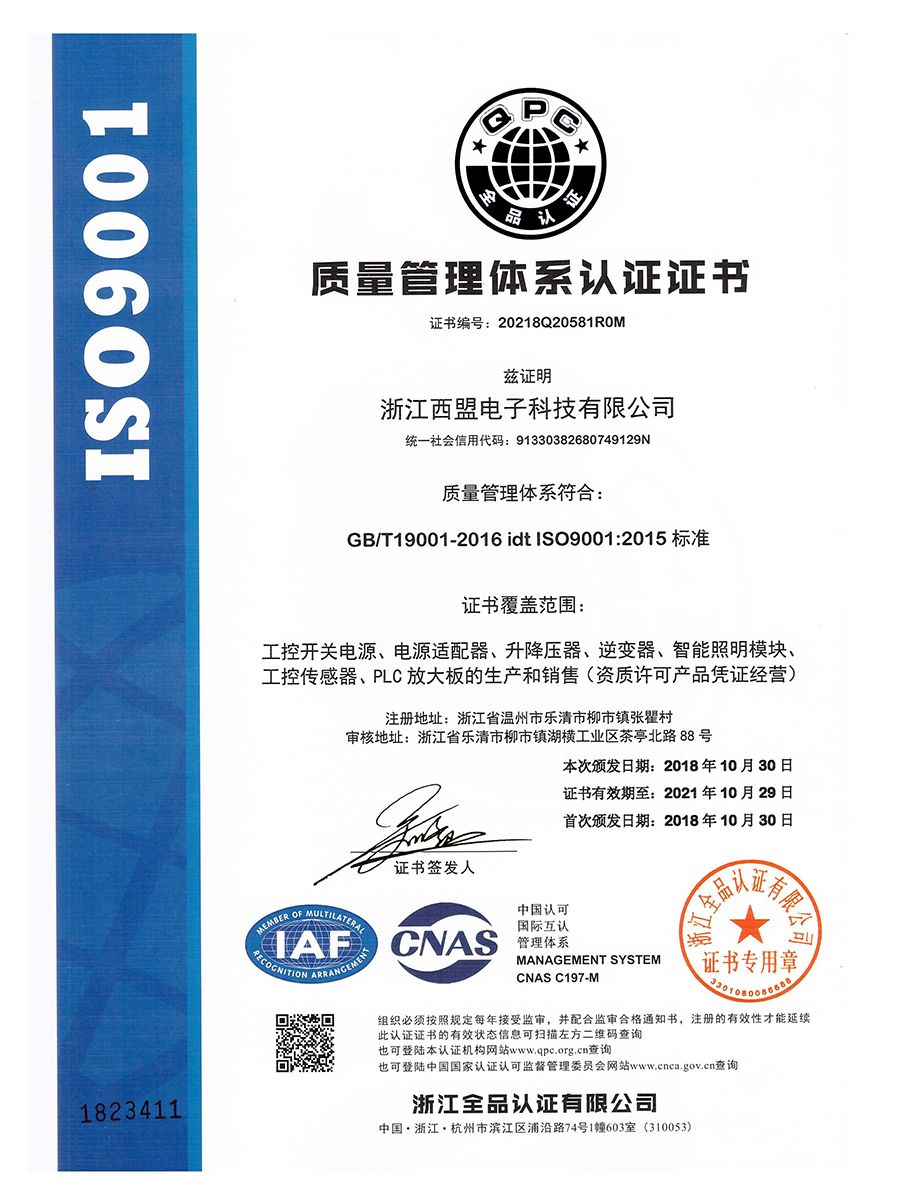 質量管理體系認證證書
